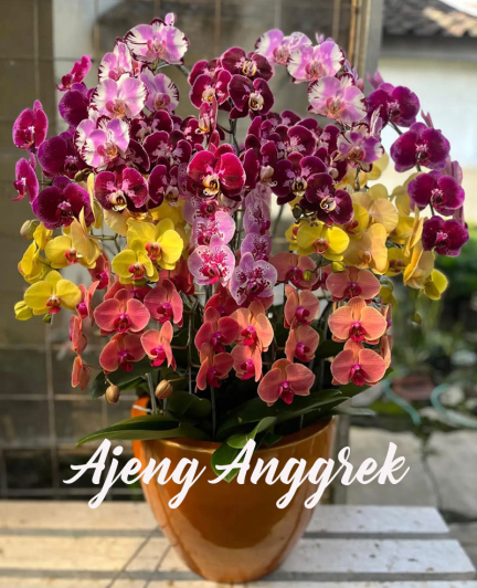 Anggrek bulan multi warna , perium isi 20 tangkai dalam vas keramik besar. Cocok untuk dikirim pada acara pelantikan, ulang tahun dan acara kelahiran.