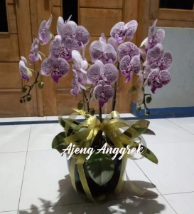Tanaman Anggrek 3 tangkai warna spesial dalam vas bunga